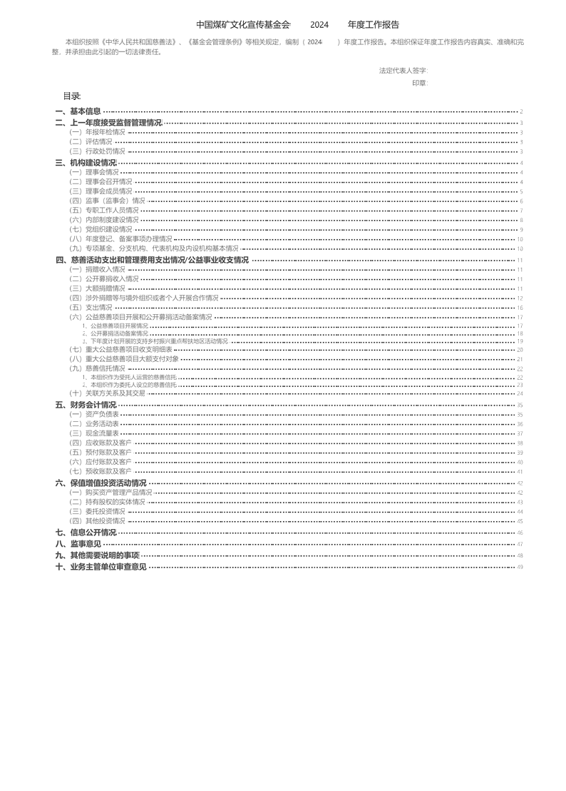 中国煤矿文化宣传基金会2024年度工作报告 来源:中国煤矿文化宣传基金会 作者: 时间:2026-03-10 【字体:小 大】 中国煤矿文化宣传基金会2024年度工作报告(以下简称“报告”)已经登记管理机关审查通过,根据《基金会管理条例》规定,现将报告全文公布。 分享到: 【打印正文】
