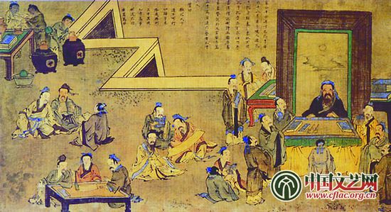 中国艺术教育源远流长。我国艺术教育的最初形式为“乐教”,“兴于诗,立于礼,成于乐”,是孔子对此进行的概括总结。诗、礼、乐,是艺术的三种样式,也是教育的三种方式,艺术与教育合而为一,艺术教育是成就人生最高境界的关键要素。上图分别为《孔子圣迹图之杏坛礼乐》(左)、《乐舞百戏图(两城山汉画像石拓片)》