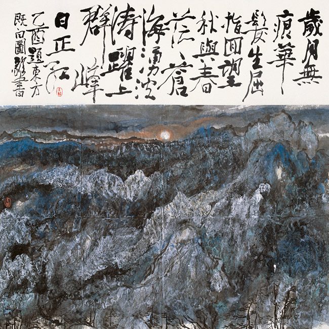 在此一意义上论色彩就把思想层次深化和有序化,通常说的是“心灵语境”,即由外向性的心理语境转化为内省性的心灵语境。心灵语境也是丰富多彩的,但不是视觉色彩,墨色也不等于色彩单调,而是更富生命的内省开拓。生命本体也有五色论,这和人天定位有直接关联性,这是水墨升华必经之路。