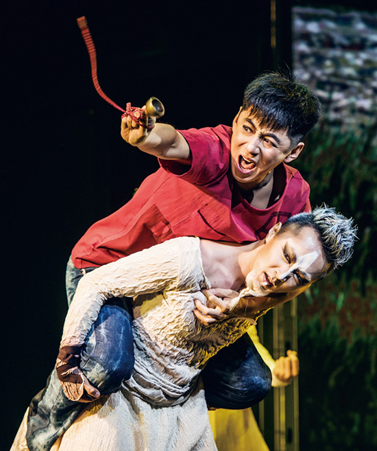 冯俐:这部戏的创作,就是中国儿童戏剧向中国儿童文学的致敬。戏剧与文学属不同艺术体裁,拥有各自不同的艺术特质。比如说:小说是“叙述”的艺术,而戏剧是“动作”的艺术等等。二者的精神实质却是相同的,都是人学。其关注的核心都是人。《山羊不吃天堂草》的原小说是一部具有扎实的社会背景、深刻思想性和独特寓言性的作品。但一部作品在自己的文体中实现得越完美,转换成另外的文体时就越困难。在导演、演员和主创们的共同努力下,同名戏剧作品得到了原著作者曹文轩老师的认同,也得到了戏剧专家们的认同。好的改编不仅需要凝练,更需要提炼,需要重新结构。剧本将小说中娓娓道来的顺序描写,天翻地覆地重新编织成两条戏剧线索。一条是具有悬念的情节线,倒叙式的回溯。从少年明子“涉嫌诈骗”被带到派出所开始,在各种人的不断追问中,在“现在进行时”的外部框架里,故事沿着明子独自思索的心理线推进,不断跳回到“过去进行时”,展现明子进城打工,一路上,人生观、价值观不断建立、颠覆、变化跌宕的心理历程。另一条线是把原小说最后才托出的“山羊不吃天堂草”的故事,化作明子巨大的内心疑问,在序幕中,就以诗意的舞台形象提出,构成形而上意味的叩问,随明子一起探寻着“山羊为什么不吃天堂草”的答案,将一个人生问题的思索过程,形象化地贯穿全剧。保持小说的文学品质,创造戏剧的独特艺术魅力和审美价值,从一度剧本到二度呈现,令舞台上“升华”出“无边无际的悲悯”——曹文轩透过他创造的文学“看到了艺术”。
