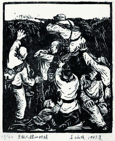 彦涵《当敌人搜山的时候》(版画)