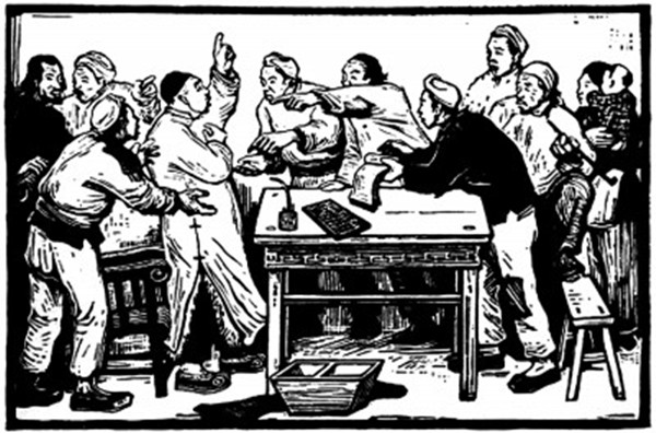 古元《减租会》(版画)