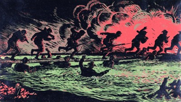 古元《人桥》(版画)