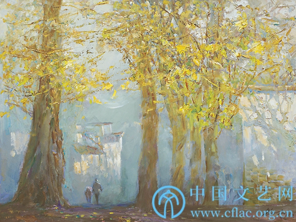 银杏树下的金色民居(油画) 鲍加