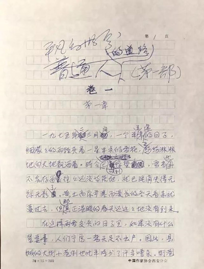 《平凡的世界》手稿,小说原名《普通人的道路》。资料图片