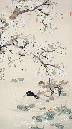 上世纪90年代,喻继高精品佳作频出,《杜鹃山雀》《芭蕉丹柿》《牡丹绶带》《孔雀戏春》《荷塘群鸭》《莲塘戏鹤图》《初春》《茶花鹦鹉》《樱花双鸽》《玉兰锦鸡》《瑞鹤图》《孔雀图》等作品都是这一时期的代表,不仅展现了画家拥抱生活、热爱自然、歌颂生命的真挚情怀,也让传统工笔花鸟画重新焕发新的艺术魅力。他在平凡的景物中开掘更深沉的精神内蕴,在人们喜闻乐见的风格中升华出独特的艺术个性,让自己的作品更加丰满、成熟,更富有神韵和意境。这些作品明丽中见深秀,冶艳中见儒雅,温馨璀璨而风规自远,锋芒内敛而光彩照人,透出的是一种至真、至美、至善的人格志趣,画出的是新时代的繁荣和民族的灿烂。
