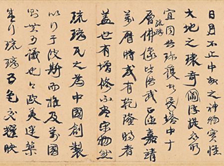 《开封琉璃塔记》对琉璃塔、开宝寺名称由来、历史沿革、建筑工匠、历次增修等,详加考述,阐砖之先河,不止中州之神物,实为大地之环奇,且琉璃塔之为万国师益明矣。但在文物保护上中国却不及西方,此塔自北宋迄今不足千年,塔中十层琉璃佛像皆世有增修,不尽宋物。因此呼吁保护古迹:“塔旧呼铁塔失其实,请证其名为琉璃塔,以与百国共珍护之。”此作虽为藁作,文情并茂,书法精妙,堪称“双璧”。康氏藁书,与其雄肆开张、茂密沉厚的书法作品碑派风格不同,多属信笔挥洒,无意于佳者,而且不同时期,风格也不尽一致。