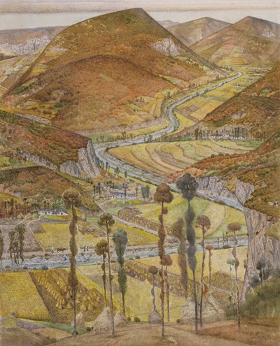 重要农产品供给保障体系和粮食产购储加销体系,也在不断完善。陈振国的水彩画《秋醉大巴山》,借鉴北宋山水画全景式构图,以金秋丰收季美景如画的大巴山,以及贯通画面向大巴山深处蜿蜒而畅通的公路,从侧面展现了我国在粮食仓储、运输和保供方面取得的巨大成就。