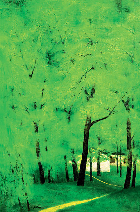因此,在绚丽的欧洲油画天地中仍留下一片可供中国艺术家展示才能的领域,这就为中国油画家打开了另一扇创造的大门,展现别样的创造空间。向东方艺术吸收营养的探索也是不少西方艺术大师在艺术探索中的着力点,如在欧洲印象派的作品中就出现过不少东方艺术的元素。这是他们发展欧洲艺术的着力点,也从另一个方面显示出中国美学理念的艺术魅力。所以,要把中国人自己的风景画艺术发展到一定高度,既要不同于欧洲的传统艺术,又要兼收并蓄世界艺术的精华,更要创造符合中国人自己审美理念的艺术作品。一代代艺术家与时代同行,逐渐将中国文化精神的特色,注入油画风景的实践之路和时代艺术的探索之路。