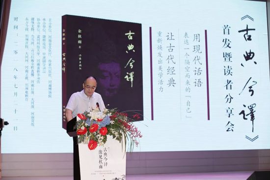 新书《古典今译》首发选择来到河南,是因为与河南深厚历史底蕴相契合,余秋雨现场谈到庄子、谈到韩愈等历史名人时,会特别给大家强调"这也是一位河南人"。