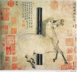 在古代,马是人类最为重要的生活和生产伙伴,因此古人常用“千里马”来比喻杰出的人才,也常用马来象征显赫的功勋,譬如周天子的“八骏”、唐太宗“昭陵六骏”,说的虽然是马,褒扬的却是不世功业。正因为马具有如此重要的地位,所以文人墨客一直对其情有独钟,留下了许许多多吟咏的篇章,其中以唐人最多,据说《全唐诗》中专写马的诗就有120多首,而零散写马的诗句,更如过江之鲫,数也数不清了。