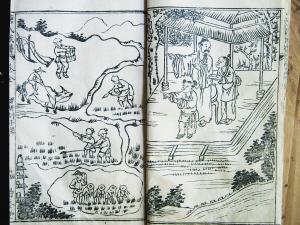民国十三年(1924年),攀丹《唐氏族谱》中“耕读传家”的画面。 海南日报记者 陈耿 摄