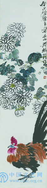 菊花雄鸡(1927年) 99.5cm×46.4cm 齐白石