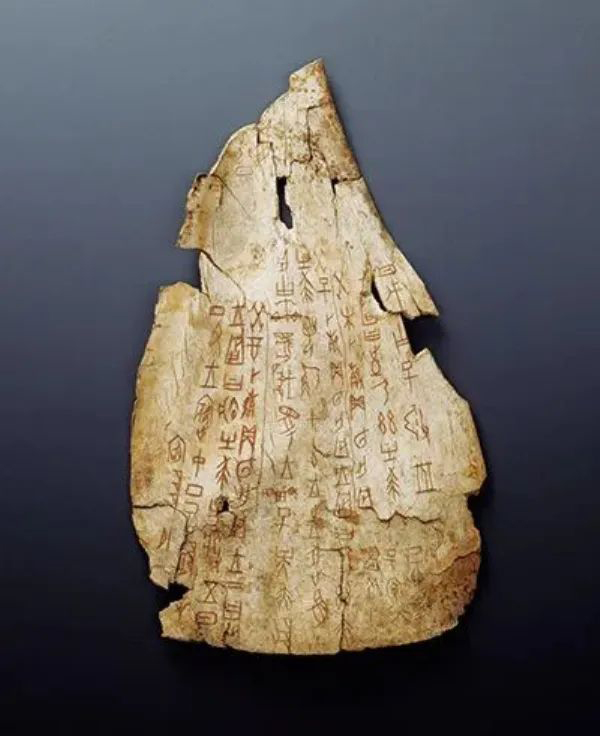 图为收藏于中国国家博物馆的王宾中丁·王往逐兕涂朱卜骨刻辞