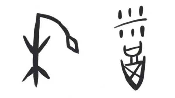 记录植物的甲骨文“禾”(左)、甲骨文“稻”(右)