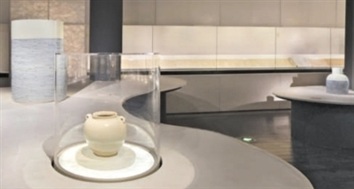 古与今的唱和也成为赓续传统的重要途径。展厅里,元代苏州玉山草堂主人顾瑛留下的“造云石”不远处,当代画家刘丹的作品——以“造云石”为表现对象的中国画《造云玉山》,诠释着中国人的风雅意趣。在“曲水流觞”式的展台上,诸多古代瓷器旁,白明的另一组作品《线释水》——细密的青花蓝线条在瓷器上层叠如水波,激荡起跨越时空的艺术对话。传统的中国笔墨、陶瓷材料,展现的却是现代的艺术感觉,贯穿其中的,是艺术家们对中华优秀传统文化的热爱与传承。