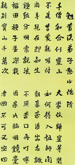 当下禅文化被不断赋予新的时代内涵,不仅丰富了人们的精神世界,更建立起传统文化意蕴与当代慎思的桥梁。而毛笔书法、毛笔书写曾是中国人日常的书写方式,如今则成为一种培养品行修为的艺术,两相结合,使禅文化的书写化作一项隽永的心性修为之旅。几年前,在与一位从事现代绘画艺术创作的“70后”艺术家交谈时,得知他会在早上用毛笔抄写经文作为每日的功课,也许这便是禅在我们这个时代最真实的剪影,它或许并未如人们想象中的那么拘于形式,也并没有异常神秘和遥不可及,而是在人们的日常中都可以真实感知和触摸到的。