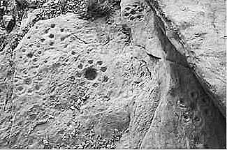 单独凿刻在独立岩石上的圆形凹穴,大者深度可达十几厘米,浅者2-3厘米。(图1)