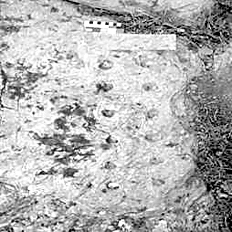 无规律凹穴组合即为圆形凹穴的不规律组合,其数量不等,组合方式不一,表现形式因岩面而异。(图5)