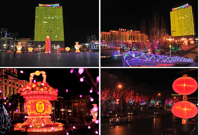 在办公楼广场上,高大的旺火彩灯熠熠生辉,寓意着集团公司80万煤海儿女团结一致、凝心聚力,主动适应新形势、迎接新挑战的豪情壮志;广场四周以花为主题的彩灯造型精致、色彩缤纷,寄托着同煤人追求美好生活的共同期盼;道路两侧吊挂的大红灯笼与彩色灯带相得益彰,尤如夜空中闪烁的繁星,勾勒出一幅喜庆祥和的春节画卷。