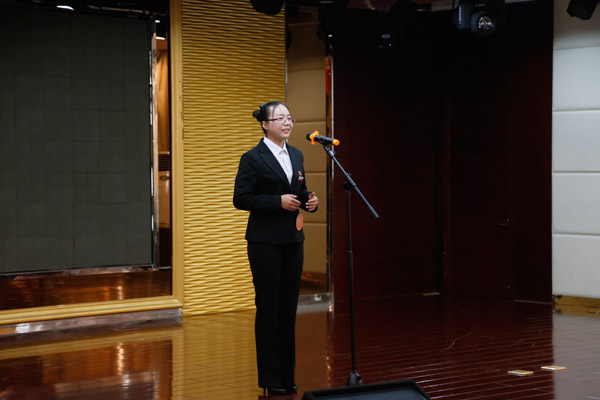 生活中心党支部参赛选手高欣正在满怀激情的演讲