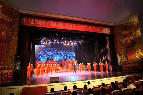 日前,冀中能源峰峰集团公司迎国庆“祖国颂——高举红旗向前进”合唱晚会在峰峰集团会堂举行,集团公司领导同近千名职工群众欢聚一堂,庆祝共和国67周年华诞。