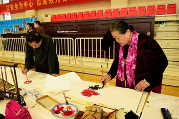此次活动共邀请省、市以及潞安集团的20余名书画家参加,其中有享誉省内外的著名作家、书法家王东满先生,篆刻家、书法家、画家方胜先生,长治市美协主席孟多昕,长治市书协主席程旭清,长治市青年书协主席史留俊等。上午9点整,展览正式拉开序幕,书画家们首先参观了展览。本次展览作品题材丰富、形式多样,从整体作品上看,行草隶篆皆有,国画作品山水、花鸟俱全。只见正楷方正规矩,篆书刚劲有力,行书飘逸清秀,草书有万马奔腾;美术作品山水大气磅礴,荷花水墨清香飘逸,写意画中寓含深意。整个展厅真可谓书香飘远,翰墨传情。再看摄影作品,有建矿历史照片,十年辉煌成就图片,也有摄影家走进矿区采风所拍摄的优秀作品。展览照片完美的构图、饱满的色彩,如身临其境。在笔会现场,随着王东满先生的一幅“惠风和畅”落墨,众书画家正式开始了现场笔会。只见他们臂运千金,笔走龙蛇,行书、楷书、草书、隶书、山水画各显其能,一幅幅苍劲有力的作品展现在眼前,引得大家啧啧称赞。此时,工作人员有的准备纸张,有的挑选内容,有的扶墨拉纸,有的整理成品,各行其事,规范有序。经过一上午切磋交流,书画家们畅舒心怀,各表其意,书写司马煤业公司十年发展成就,讴歌矿工奉献精神,为该公司成立十周年纪念活动锦上添彩。