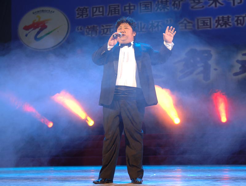 颁奖晚会上,应邀担任本此大赛评委的开滦矿工歌唱家王海天现场演唱歌剧选段《请告诉他》赢得全场热烈的掌声。(摄影:王海天)