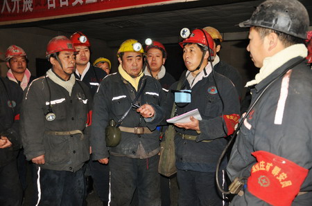 12月28日,曾获感动中国的十大杰出矿工、全国五一劳动奖章、全煤系统劳动模范、安徽好人等荣誉称号的淮北矿业朱仙庄矿职工倪龙(右二)正在向工友传授自己的“安全经”。