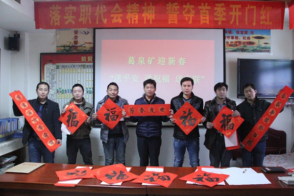 为了喜迎2017年新春的到来,营造喜庆的节日氛围,推进企业和谐、稳定发展,1月20日,冀中股份公司葛泉矿工会组织各女工单位协管员深入到井下一线单位为职工送去了春联与福字。