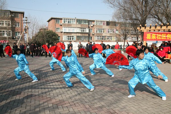 表演赛在热闹的大鼓,喜庆的秧歌中开场,还穿插了骑驴、拉碌碡等表演,营造了欢乐、热闹、祥和的气氛。舞蹈《花一开就相爱》,朝气蓬勃;张翠兰、马二堂等表演的舞蹈《走西口》,以优美的音乐,传神到位的演绎引来观众的阵阵的掌声;张爱敏等表演的太极扇,整齐划一,动作到位;李艳英等表演的《三十二步健身操》,展现了社区居民健康、乐观、积极的生活状态。