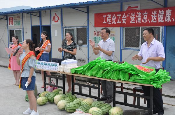 7月13日,安徽省淮北矿业工程处工会组织协安员携带着西瓜、绿豆、白糖和毛巾、香皂、药品等消暑慰问品,深入安装公司安信项目部无为华塑工地开展“送清凉、送健康、送嘱托”协安活动,为一线职工带去了歌曲演唱、安全演讲、心理疏导互动和“送健康”等系列活动,为一线职工量血压,发放了安全礼包;送上清甜可口的西瓜和一句句安全祝福,让施工现场的职工甜在嘴里、暖在心间,营造出关心职工、关爱生命、关注安全的良好氛围,切实把防暑降温工作落到实处,确保夏季安全生产,保证职工平安度夏。
