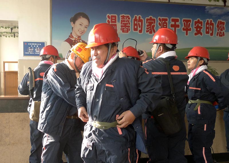 解海龙穿上矿工服准备下井