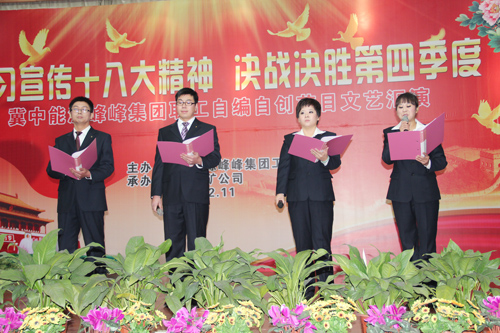 11月中旬,由冀中能源峰峰集团公司工会主办和孙庄采矿公司工会协办的学习宣传十八大精神,决战决胜第四季度职工自编自演节目文艺汇演在孙庄采矿公司拉开帷幕。来自峰峰集团公司15个基层单位的23个节目参加了展演。