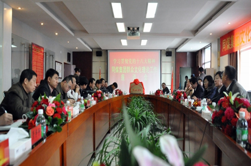 党的十八大报告将建设文化强国作为自己的行动纲领,并把增强全民族文化创作活力作为实现文化强国的关键所在。与会同志一致认为,同煤集团在文化氛围浓厚的塔山煤矿创建基地,是在用行动落实党的十八大精神,体现了煤矿文化研究进入到了一个新时期,掀开新的一页,必将进一步推动和促进文化理论工作的深入开展,为企业实现和谐发展提供更加全面的文化理论支持。在随之举行的座谈会上,大家结合同煤集团文化工作实际,就学习宣传贯彻党的十八大精神,创新发展具有煤矿特色的文化工作,实现煤矿群众文化工作大发展、大繁荣各抒己见、畅所欲言。