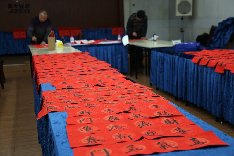 2月7日,该矿工会组织书法协会人员在四楼会议室开展了“送对联、送祝福、送平安”活动。该矿工会为职工义务写春联活动拉开了帷幕。为了更好地贴近职工,事先采购好大红纸、墨汁、金粉和毛笔等物品,组织来自车间工会的书法协会会员为职工义务写春联。