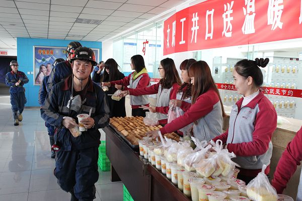 女工委组织积极发挥“半边天”作用,常年到井口“冬送温暖,夏送清凉”,把女工最真挚的嘱托与感谢,送给每一位矿工师傅,用内在的精神和力量托起煤海的半边天,为企业和谐稳定安全发展营造了浓厚氛围。