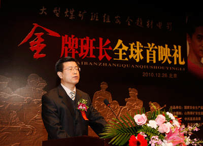12月26日,在全国煤矿班组安全建设推进会召开期间,由国家安全生产监督管理总局宣传教育中心、北京九州同映国产数字电影院线、山西飞天影视传媒有限公司等单位联合摄制的煤矿班组安全题材故事影片《金牌班长》在北京举行了隆重的首映式。