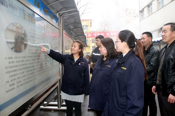 12月10日,河南能源义煤公司耿村煤矿几名青工正在该矿宣传厨窗前组织学习“耿村好人”先进事迹。截止目前,该矿已推选出25名“耿村好人”先进事迹,制作成宣传排版放进井口厨窗内,供上下班职工学习。自今年元月份以来,该矿在全矿范围内开展主题为“助力‘1531’、争做耿村好人”评选活动,并组织力量对矿区那些看似平常,却具有永恒道德之美、敬业之美、创造之美、奉献之美的先进人物和闪光事迹进行深入挖掘,使全矿干部职工通过榜样带动、典型引领,激发全体干部职工对标先进,让不断涌现的“耿村好人”汇聚成推动矿井安全发展强大正能量,为河南能源二次创业作出积极贡献。