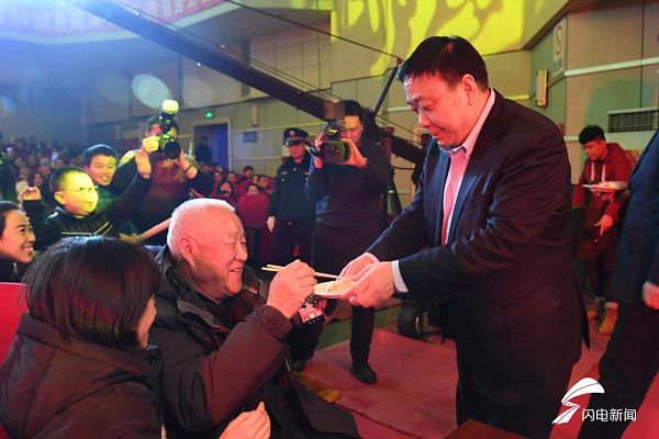 春晚现场,兖矿集团董事长李希勇现场为职工送水饺。