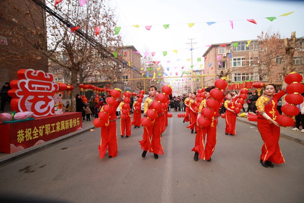 职工家属通过独具民间特色的民俗表演方式,充分展示了该矿经济发展、社会稳定、职工生活幸福安康的和谐景象。