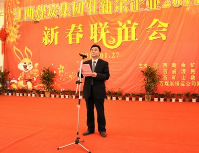 下午3时许,新春联谊会在欢快的音乐声中拉开序幕,新余矿业公司罗庆贺总经理作热情洋溢的新春致辞,对包括新余矿业公司在内的四家单位的职工致以新春问候,一年来,新余矿业公司在省煤集团公司差异发展、双链延伸|战略发展的引领下,经过广大干部职工的扎实工作,取得了自公司组建以来的最好成绩,原煤突破200万吨,实现利润1740万元,主业收入2.43亿元,GDP突破9亿,实现了安全形势持续稳定好转,成绩显著。成绩的取得,在于公司上下大力解放思想、创新观念;在于新矿人众志成城、奋发有为;在于广大员工同心同德、真抓实干。罗庆贺总经理代表新余矿业公司向公司广大员工表示真诚的感谢,并祝愿新余公司、威源公司、救护总队和销运公司新余分公司事业蒸蒸日上、前程似锦。矿山救护总队、威源公司和销运公司新余分公司党政主要领导分别在联谊会上致辞。
