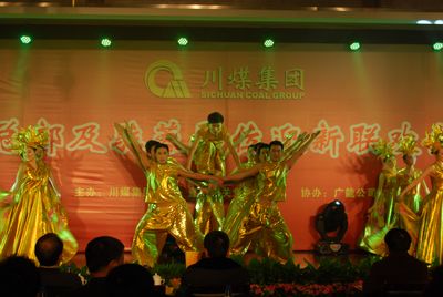 晚会在龙滩煤矿职工自编自演的一首歌舞剧《川煤明天更辉煌》中拉开帷幕,龙滩煤矿24位身着金黄色的参演人员以优美的舞姿、悦耳动听的歌声表达了1100名龙滩职工对川煤集团领导的新春慰问和美好祝愿;绿水洞煤矿演出的小品《川煤赞》,歌颂了川煤集团成立5周年来,在川煤集团党政领导的正确指引下各项工作所取得的辉煌成就;南井煤矿演出的《春天来了》,以优美的舞姿、寓意深刻的内涵赞颂川煤集团各项工作正蒸蒸日上、一遍祥和的景象。这次广能公司70名参演职工千里之行为川煤集团总部领导送上了深深的祝福,表达了煤矿儿女的豪迈之情,让川煤总部职工度过了一个愉快的节日。