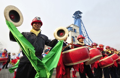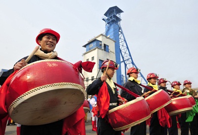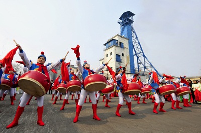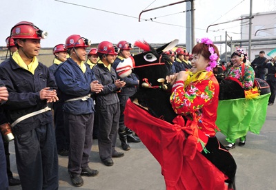 正月初一,百善矿锣鼓喧天,欢庆新春