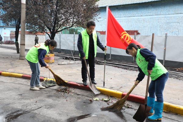活动中,志愿者们身着志愿服务马甲,沿着工业区道路至煤及工业区所有花园,大家用自带的工具认真清理道路两侧及煤场路面,扫的扫、铲的铲、修剪的修剪,并将外露的机器设备和堆放的矿用物品摆放整齐同时用绿网覆盖。志愿者们用实际行动换来一个清洁干净的矿区环境。本次活动旨在志愿者通过自身的努力,亲自参与矿区环境的清洁,让大家拥有一个舒适、整洁的矿区环境,共同营造“清洁环境 争做矿山环保卫士”的良好氛围。