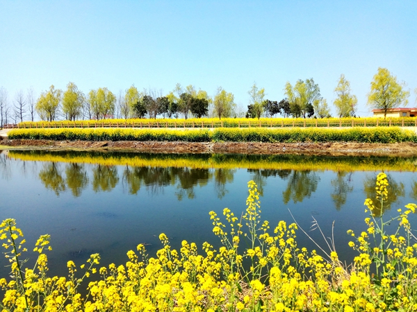 3月23日,安徽淮北矿业集团朱仙庄矿采煤塌陷区沿岸被金灿灿的油菜花覆盖,一片生机勃勃景象。近年来,该矿因地制宜对采煤塌陷区进行治理,在周围建设护坡围栏,植树造林,改善生态环境,当地村民也积极利用采煤塌陷区灌溉、蓄洪优势在沿岸种植经济作物,在水面发展水产养殖,提高经济收入。