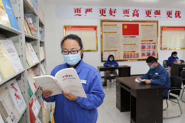 “每天阅读一小时、每月读一本好书、每年提升一门技能,倡导员工们把读书当成一种社会责任、一种生活方式、一种精神追求,弘扬阅读之美,提升个人素质,为建设‘创新、和谐、富强、振兴’新时代同煤凝聚力量。”工会副主席张翠萍说。