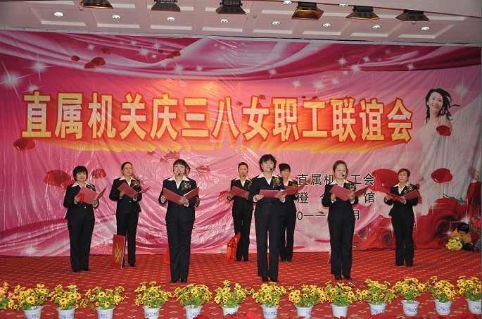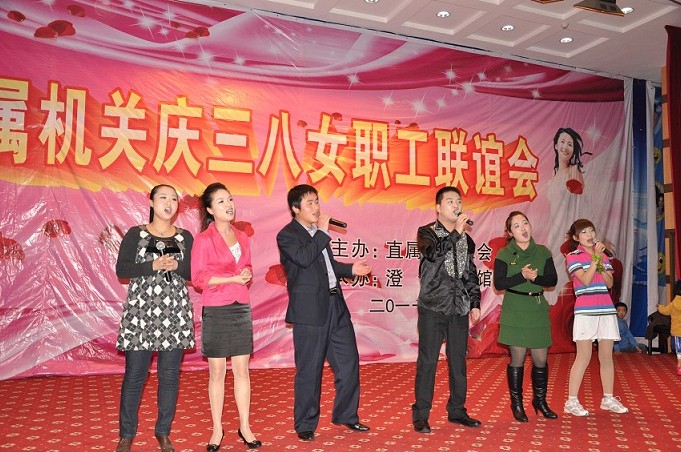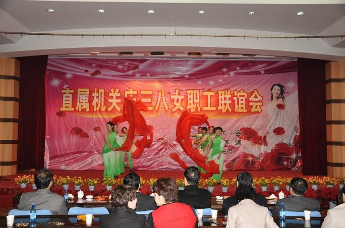 联谊会在欢乐祥和的气氛中开始,一曲欢快的舞蹈《欢聚一堂》拉开了演出的帷幕。女工们扭动婀娜的身姿,舞动美丽的手帕,舞出了对美好生活的憧憬。诗朗诵《献给母亲的歌》、《我们是平凡的信息女工》,字字抒真情,句句展风采,深深的感动了现场每一位观众。现代舞《浪漫樱花》,明快的节奏、动感的旋律,展现了宾馆员工积极向上的精神风貌,同时也为现场观众带来视觉上的完美冲击。女声独唱《新贵妃醉酒》,婉转地旋律,柔媚的唱腔,博得了台下观众热烈的掌声。黄梅戏《对花》、手语操《手牵手》、小品《宾馆奇遇》、三句半《夸夸宾馆好员工》、时装秀等,一个个机关女工精心编排的节目,充分表达了大家欢庆节日的喜悦心情。