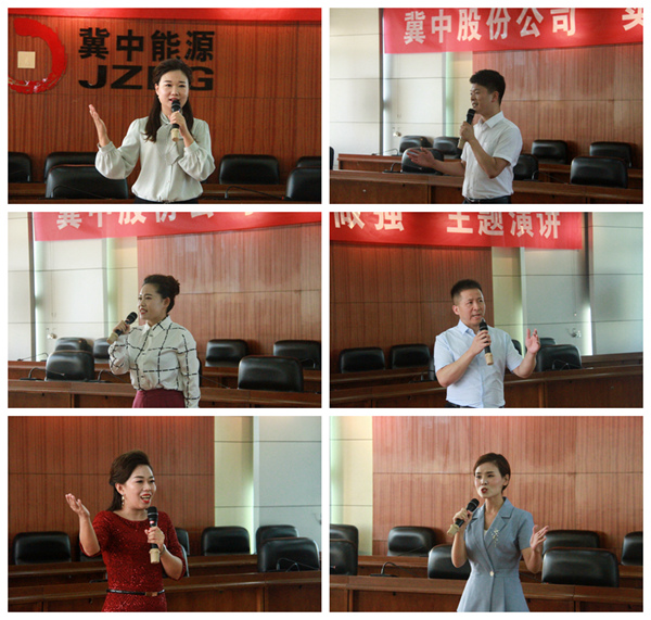 邢东矿李科《任重而道远千钧惟担当》、葛泉矿杨哲《感恩企业 忠诚担当》、章村矿高卫华《以实干姿态奋勇前行》、显德汪矿张玮华《有一种责任叫担当有一种奉献叫实干》、玻纤公司姚静丽《以实干担当奋力书写新画卷》,每一个演讲都声情并茂,振奋人心,鼓舞和激励着在场的每一位听众。
