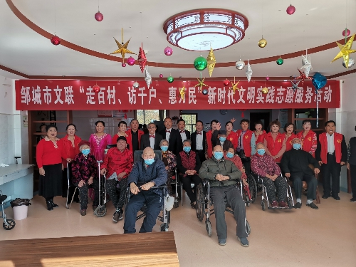 上午8:00,志愿者们驾驶16辆爱心车,自带灯光、音响、乐器、道具等演出工具,来到凫山社区养老服务中心,了解老人们的居住情况和身体状况,拉家常,解忧愁,文艺志愿者向他们表演了红色经典歌曲《老两口学毛选》《感恩》《夸祖国》《最美不过夕阳红》等精彩的文艺节目,为养老院增添了欢乐的气氛和浓浓的敬老情。老人们个个开怀大笑、喜笑颜开。一位坐轮椅老人开心地说:“谢谢自愿者,是你们让我过了一个幸福快乐的重阳节”。